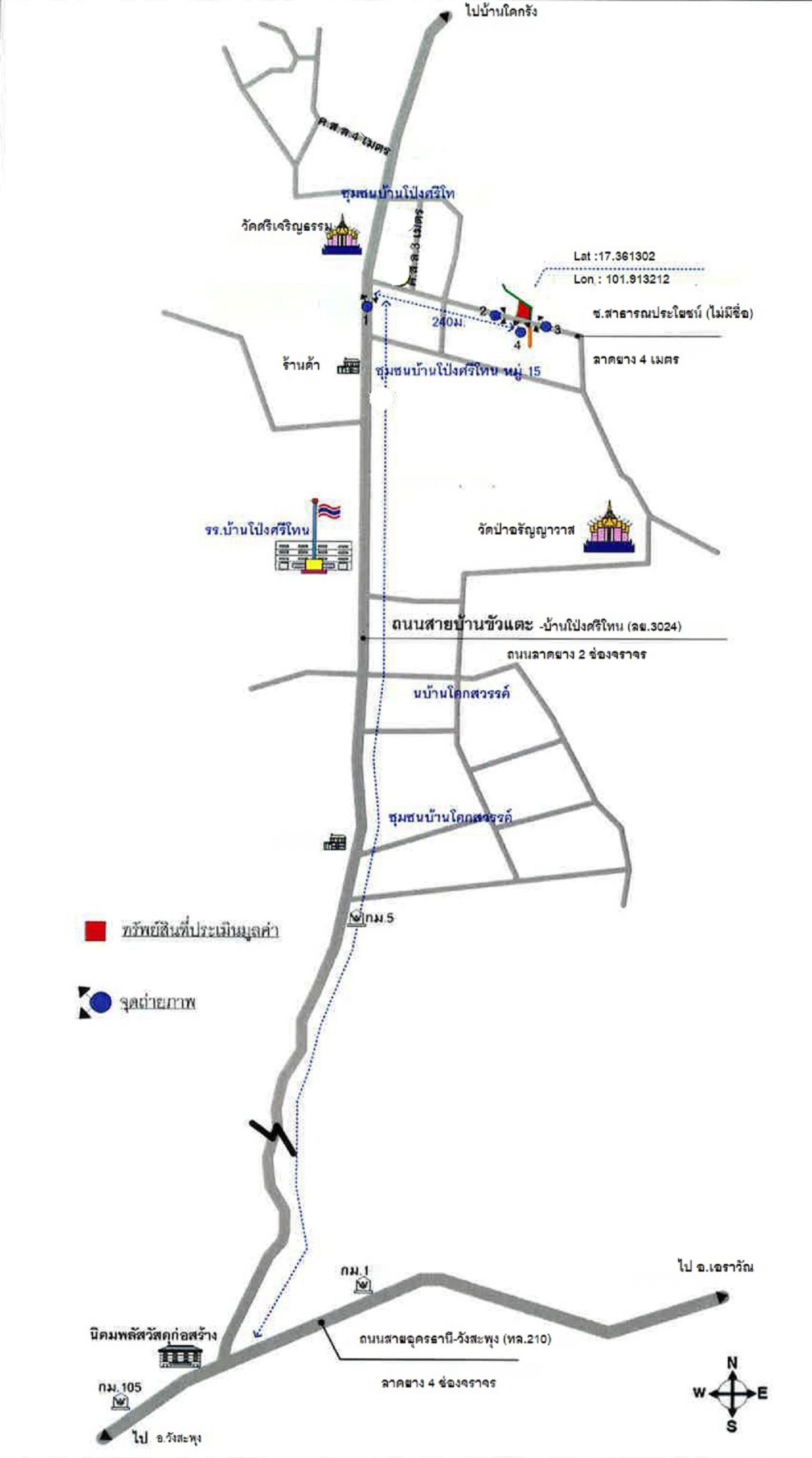155 หมู่ที่ 6 บ้านโป่งศรีโทน ซอยไม่มีชื่อ แยกจากบ้านขัวแตะ-บ้านโป่งโทน (ลย. 3024) ต. เอราวัณ อ.เอราวัณ จ.เลย พิกัด : 17.361415, 101.913168