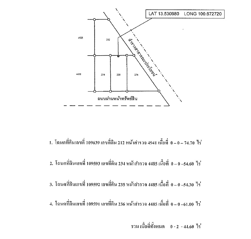 โฉนด เลขที่ 109592, 109591, 109639, 109593
